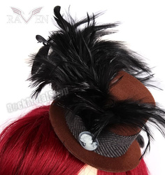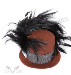 Toczek firmy RAVEN mocowany za pomocą dwóch wsuwek. Pięknie wygląda zarówno na włosach rozpuszczonych jak i wysoko u piętych.Ozdobiony imitacją piór.