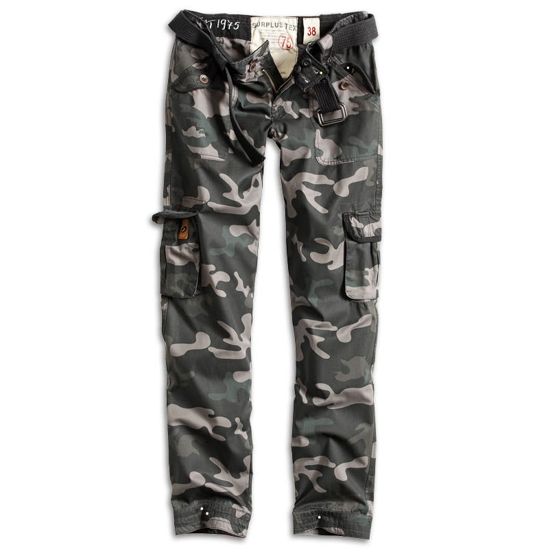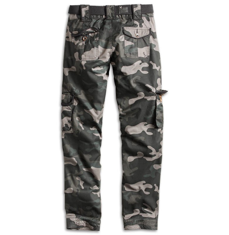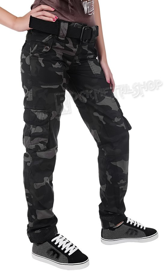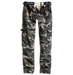 - kieszenie typu CARGO z boku nogawek zapinane na napy