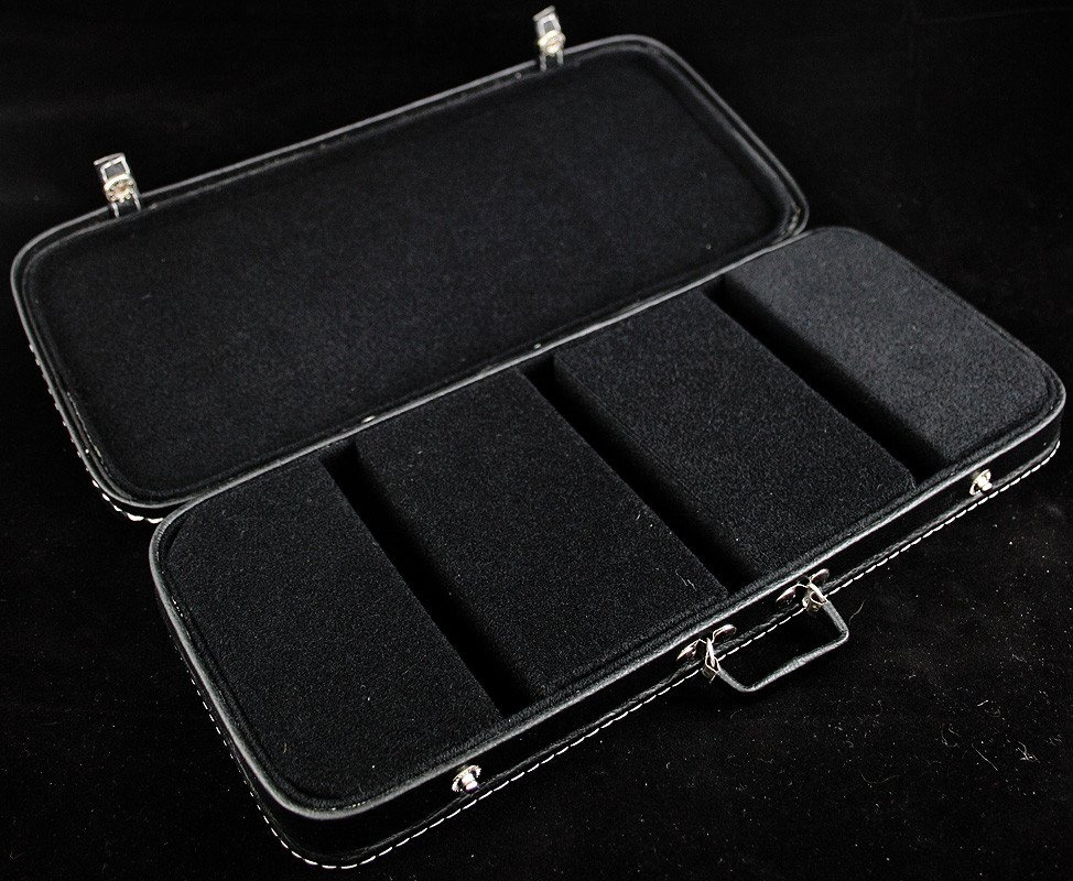 Stojak w postaci walizki na trzy miniaturki gitar: elektrycznych lub basowych.