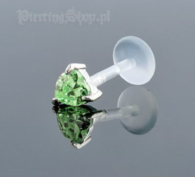 Kolczyk w kształcie serca, w kolorze oliwkowym, do tragusa, niewielkiej chrząstki u ujścia kanału słuchowego po stronie ucha przylegającej do głowy lub do stosowania jako labret w brodzie, wardze itp. Jest bardzo wygodny i pięknie wygląda. Ozdoba platerowana, a pręcik o długości 8mm jest wykonany z PTFE dla Twojej ochrony. Oczywiście masz możliwość przycięcia pręcika na dowolną długość tak, aby spełniał potrzeby komfortu w noszeniu.