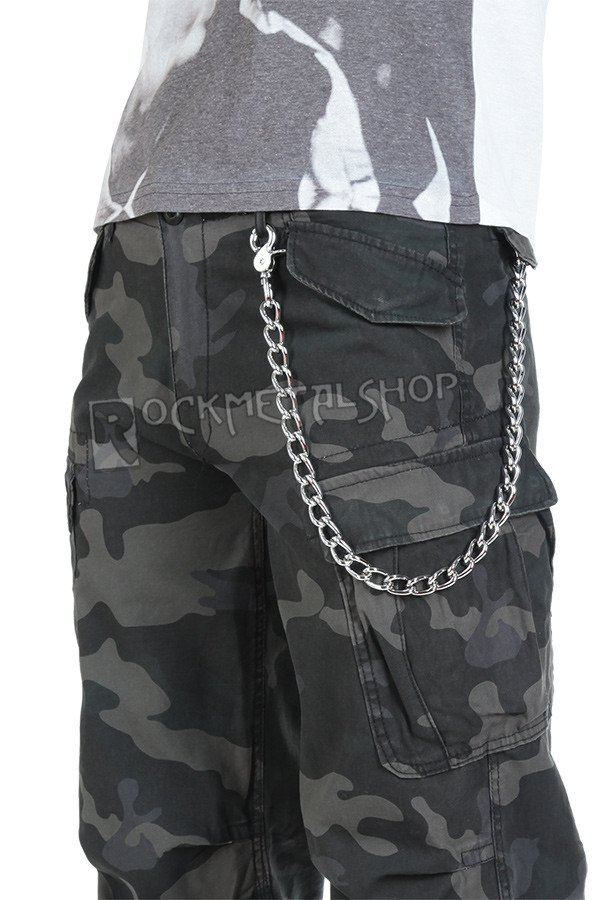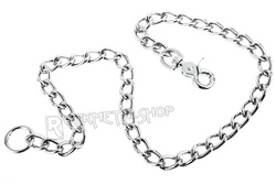 Gruby, metalowy łańcuch do kluczy/portfela. Ogniwa łańcucha są niklowane, o szerokości ok. 15 mm i długości 25 mm. W komplecie karabińczyk oraz kółko do przypięcia kluczy. Długość łańcucha: 60 cm.