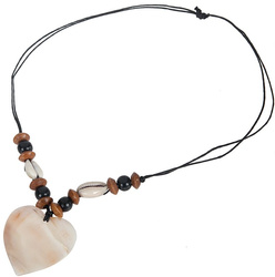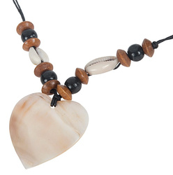 Elementy naszyjnika wykonane drzewa i naturalnych muszli.