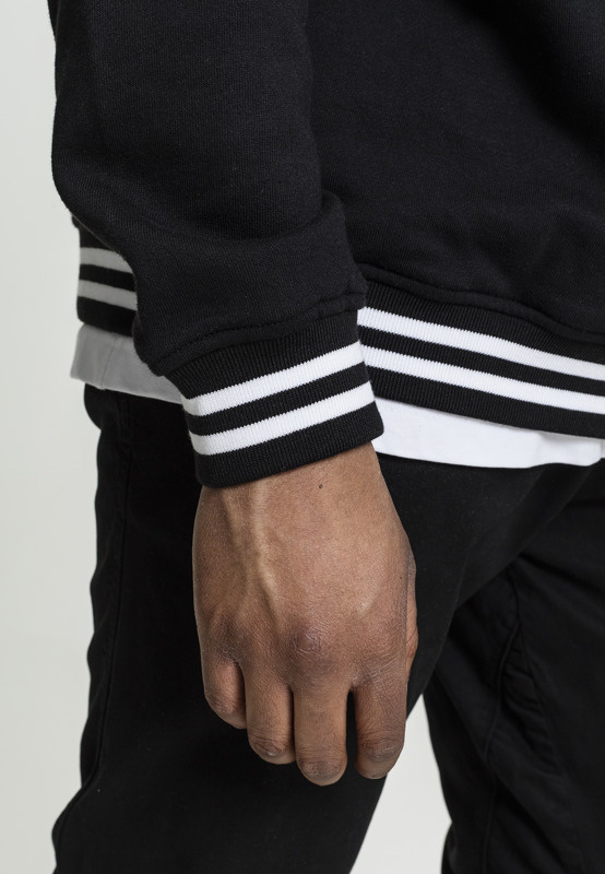 Bluza z kapturem od URBAN CLASSICS z tym wyjątkowym dodatkiem. Wykonana z wysokiej jakości materiałów, które są bardzo przyjemne w dotyku. Poza swobodnym krojem, miękką tkaniną i kapturem ze sznurkiem, ma stylowe paski prążkowane na ściągaczach w stylu "college", które stanowią fajny kontrast do subtelnego wyglądu tej bluzy. Świetna propozycja dla ludzi ceniących sobie wygodę oraz modny styl.