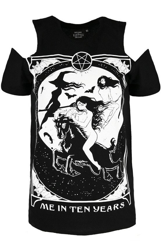 • Czarna gotycka koszulka z nadrukiem czarownic