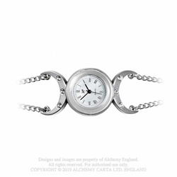 A chain wristwatch in the form of the triple moon, with the moon's two crescents each set with three clear Swarovski crystals