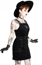 • Czarna gotycka sukienka ogrodniczka z pasem w talii.