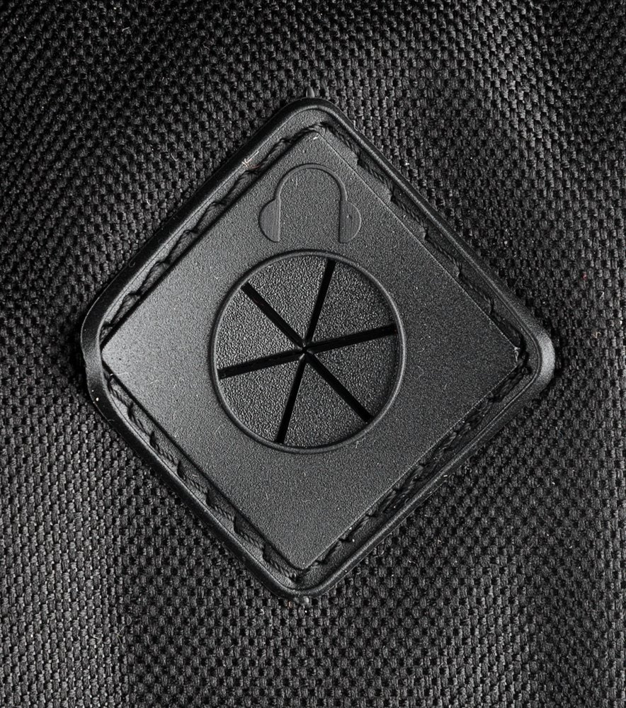 W górnej części plecaka specjalne, gumowe gniazdo - dzięki niemu bardzo łatwo przeciągniesz kabel od słuchawek Twojego odtwarzacza MP3 bądź telefonu komórkowego! Dół wzmocniony dwoma gumowymi, antypoślizgowymi nóżkami.