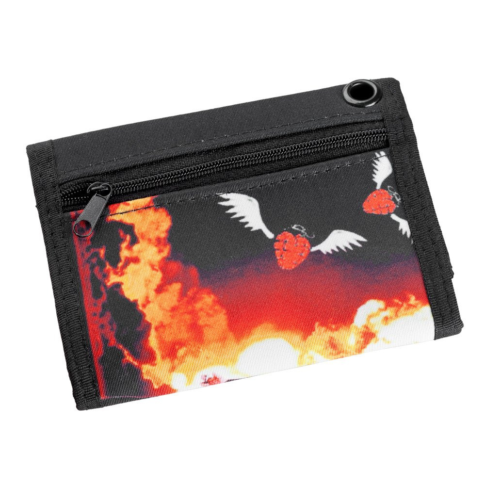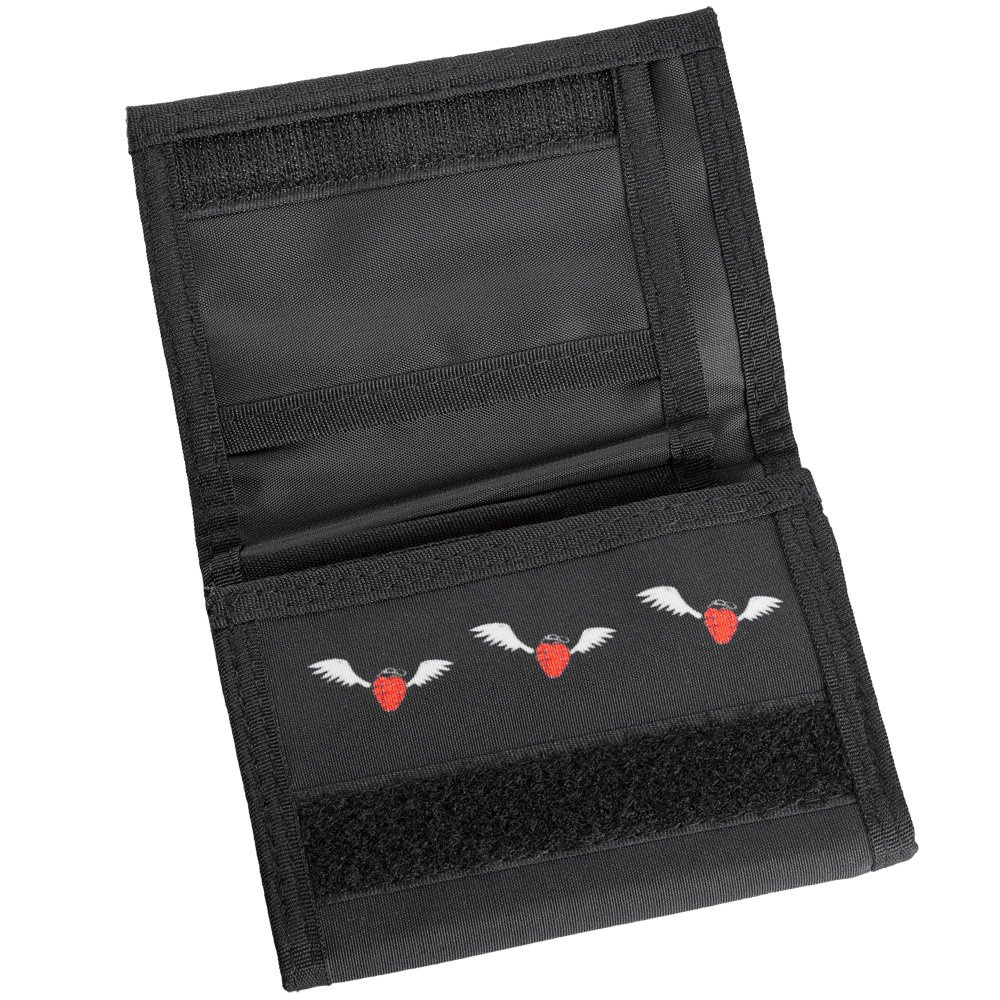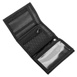 Wyposażenie: kieszonka z suwakiem na drobne, duża przegródka na gruby szmal, miejsce na legitymacje, tuzin:) kart kredytowych, zdjęcie ukochanej(go), i oczywiście możliwość zamocowania łańcuszka ( jest kółeczko) żeby nam się to cudo nie zgubiło. Nadruk na portfelu wykonany metodą offsetu.