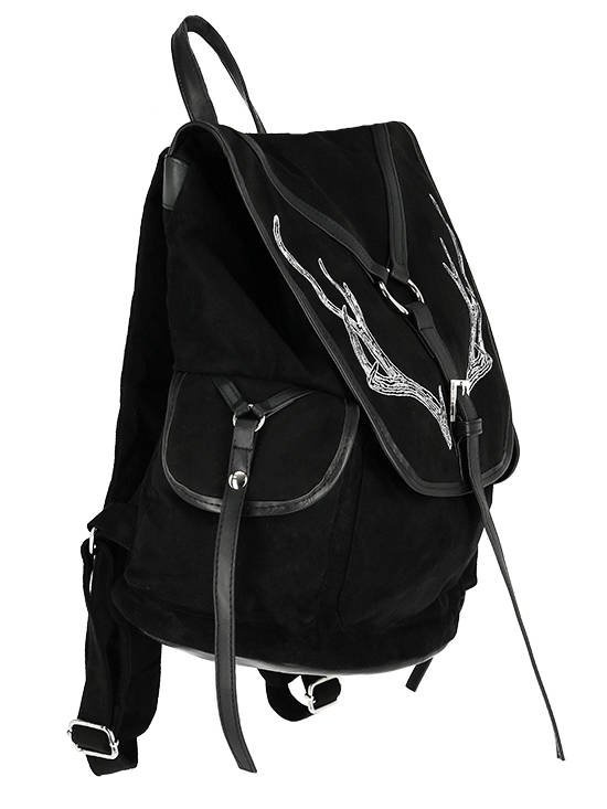 • Gotycki plecak wykonany ze sztucznego, miękkiego w dotyku zamszu.