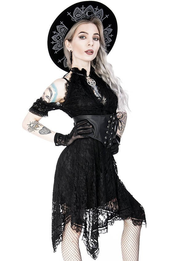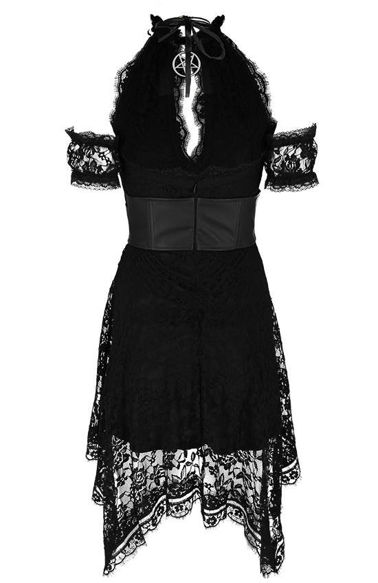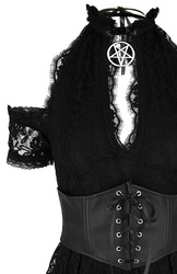 • Gotycka sukienka z wiązaną na szyi obrożą z motywem pentagramu.