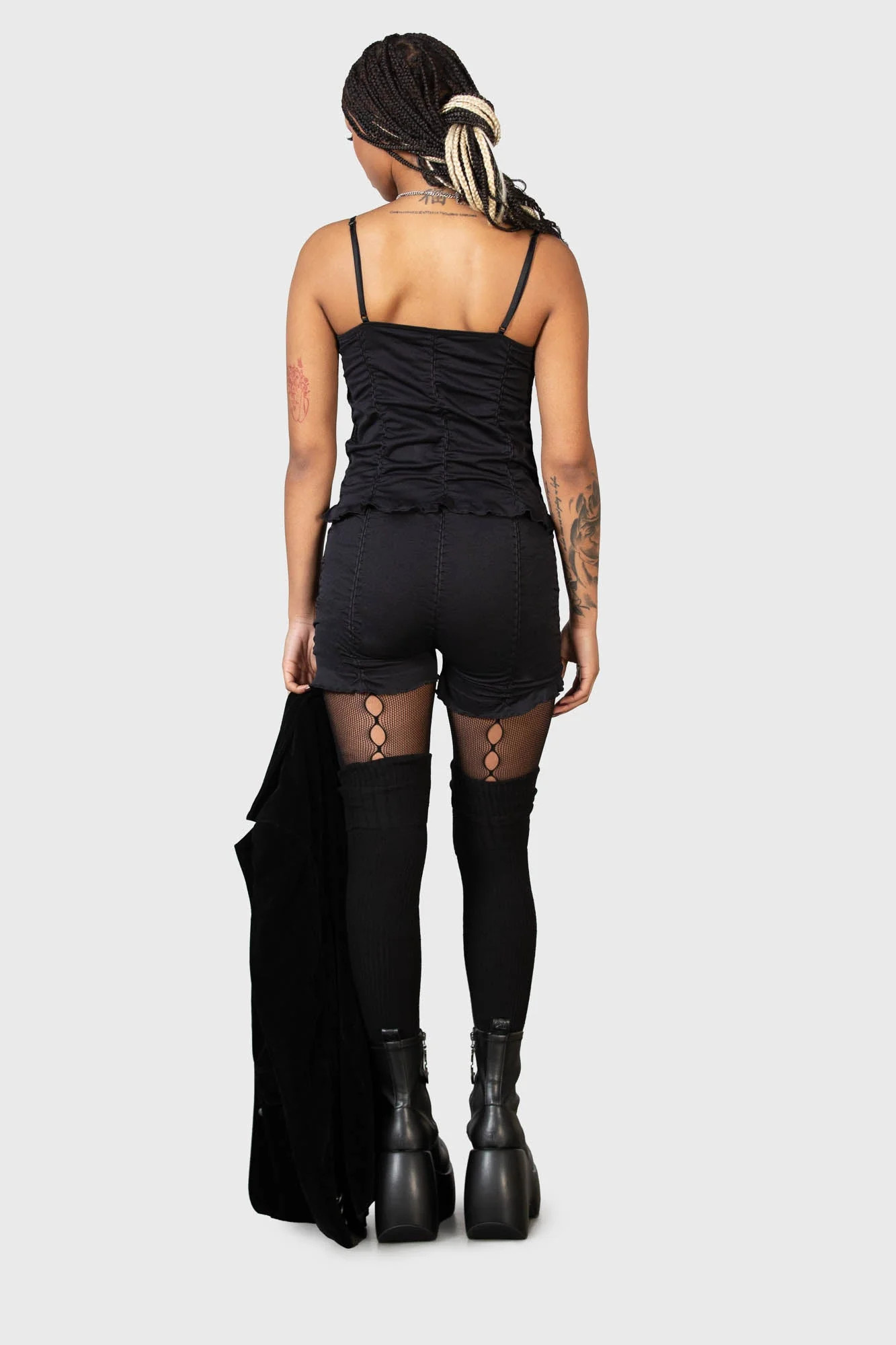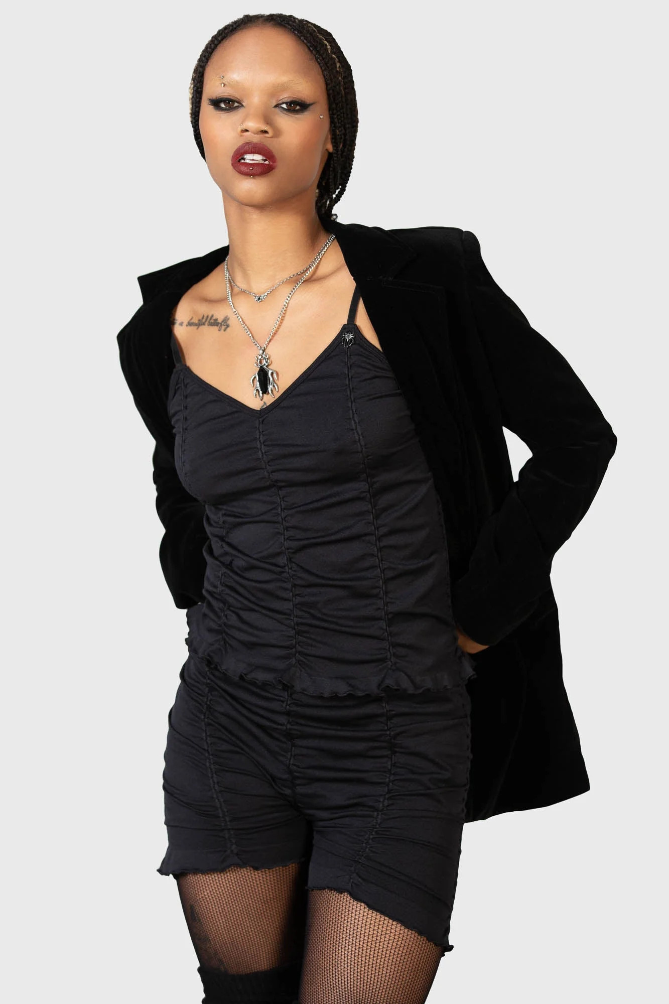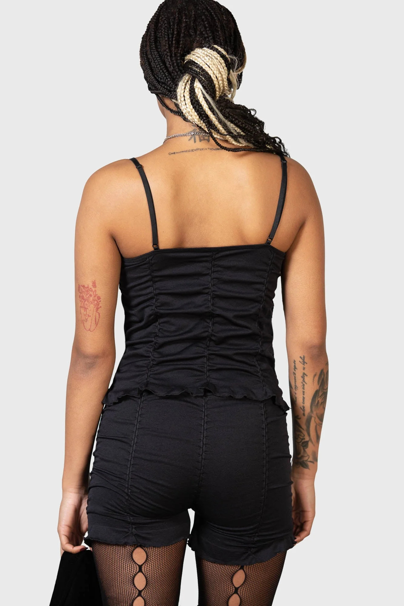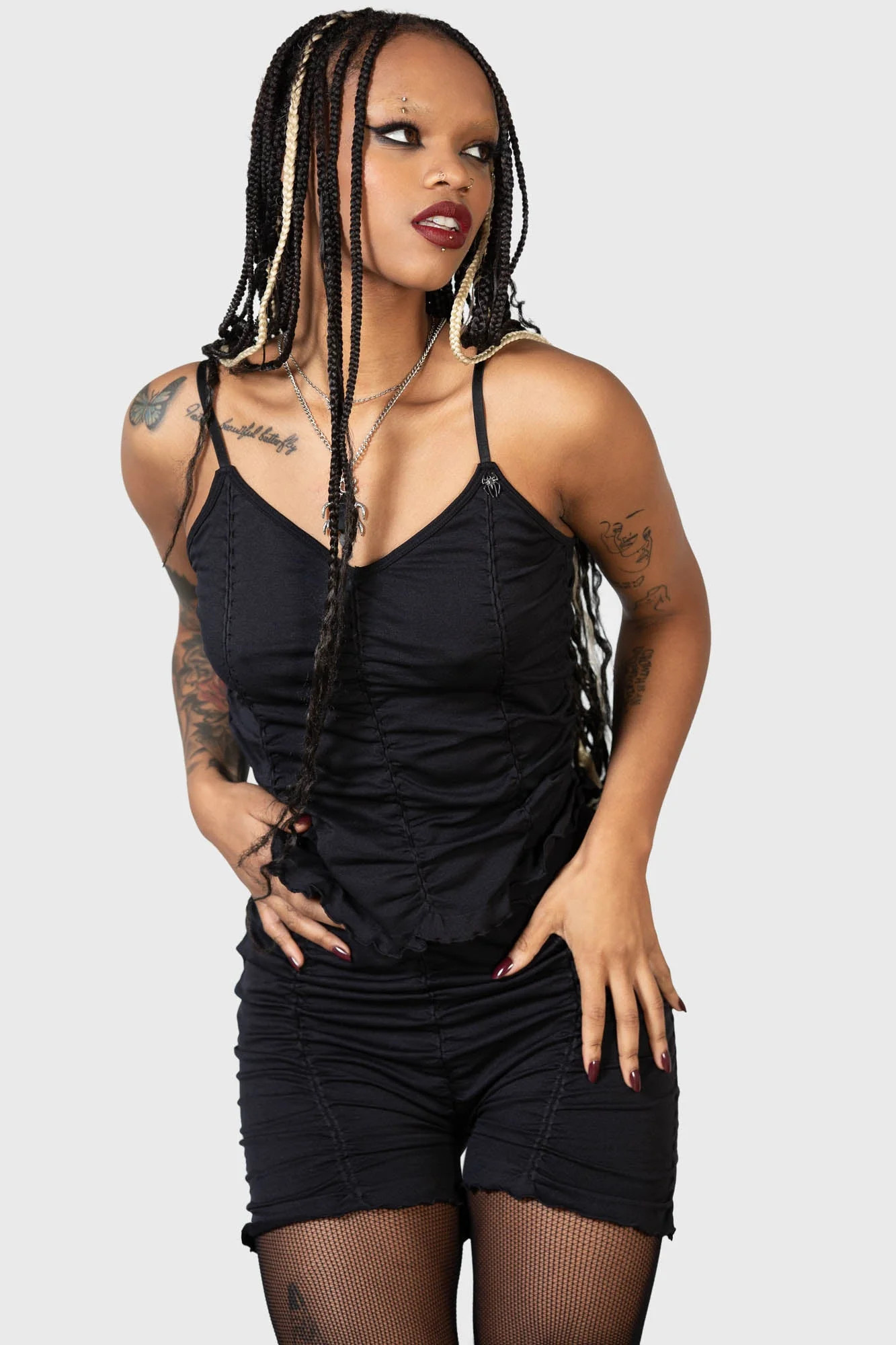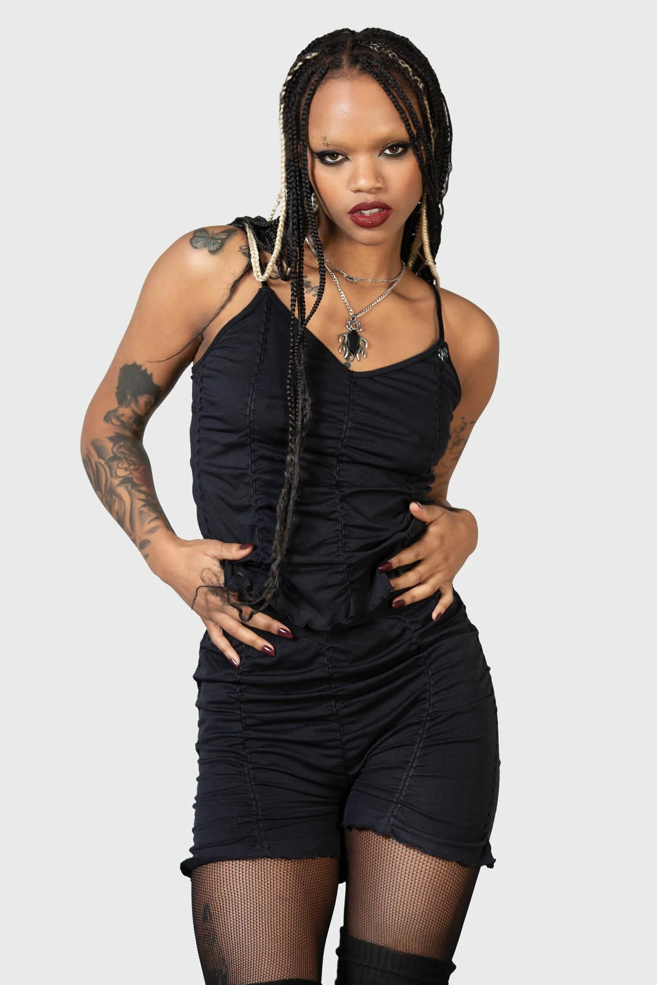 • Damskie marszczone szorty firmy KILLSTAR.