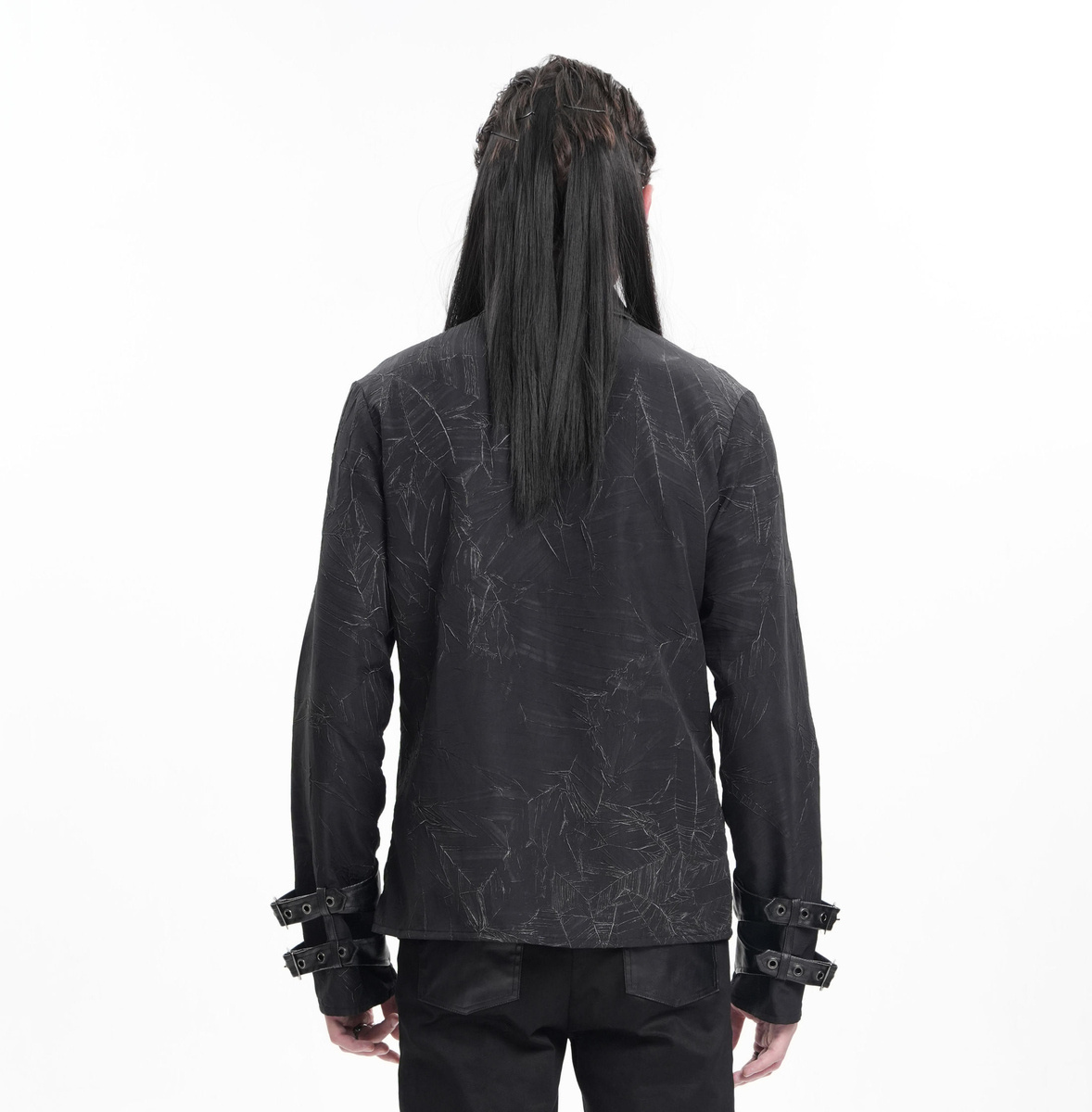 • Podwójne paski z klamrami na mankietach.