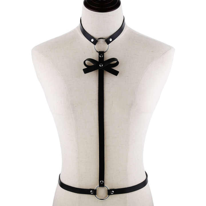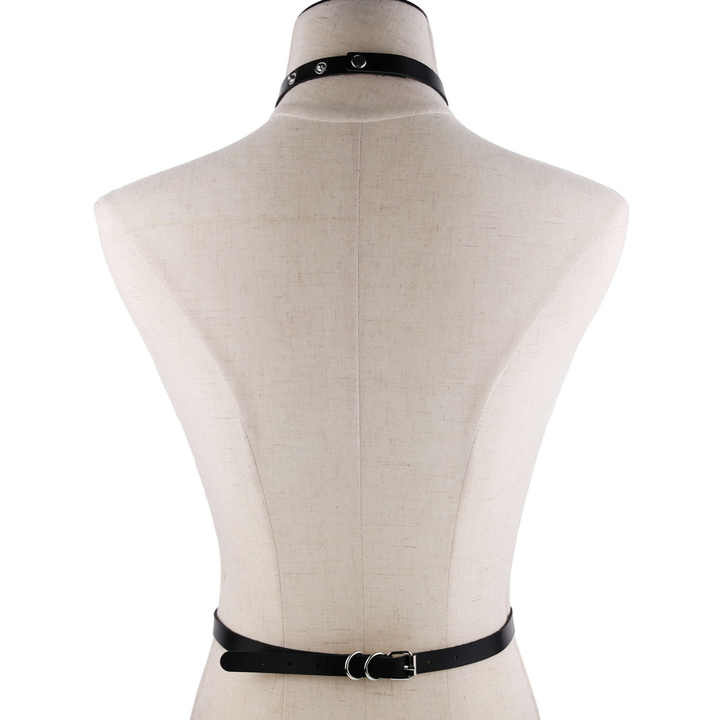 - Pasek wykonany z czarnej eko-skóry. Składa się z obroży połączonej z paskiem w talii.
