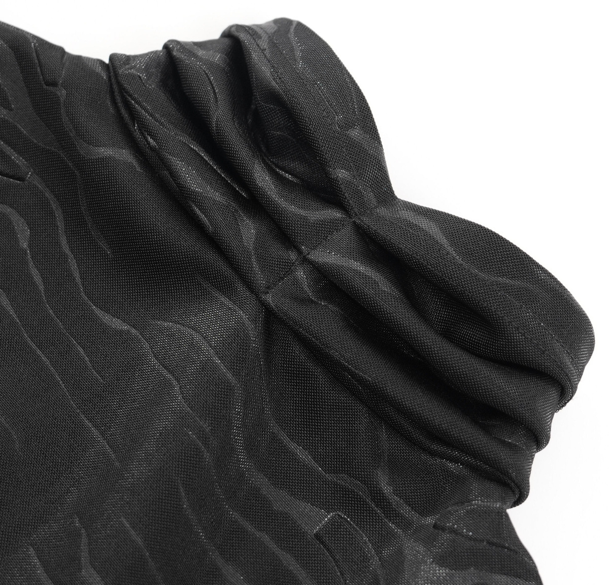 • Wysoki, marszczony kołnierz z zamkiem błyskawicznym.