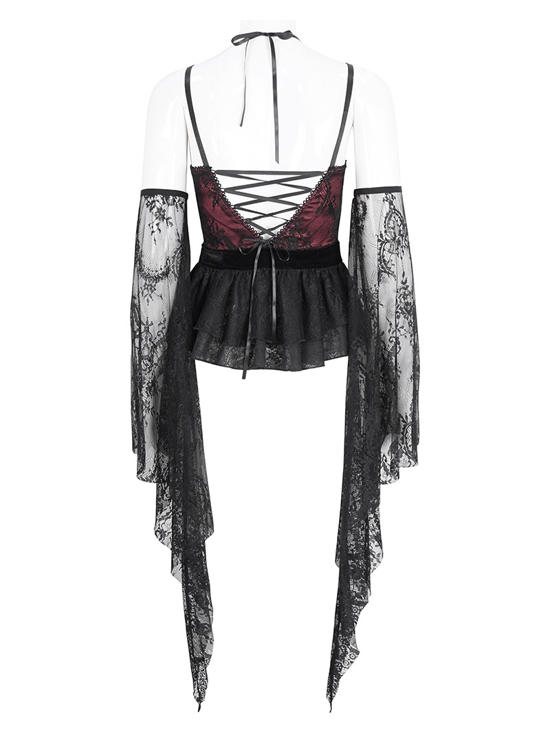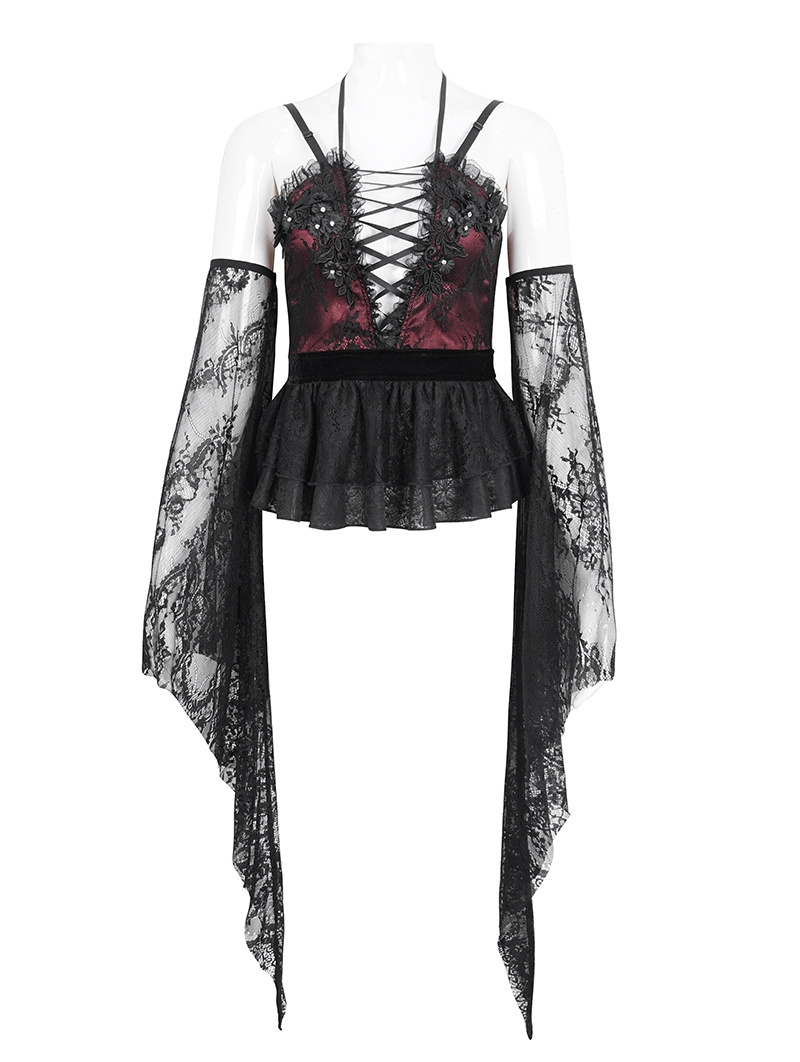 - Główny materiał to koronkowa siateczka zdobiona kwiatami, z głębokim dekoltem w serek z przodu.