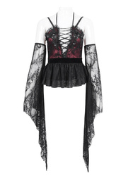 - Klatkę piersiową zdobią trójwymiarowe kwiaty, a rękawy wykończono koronką.