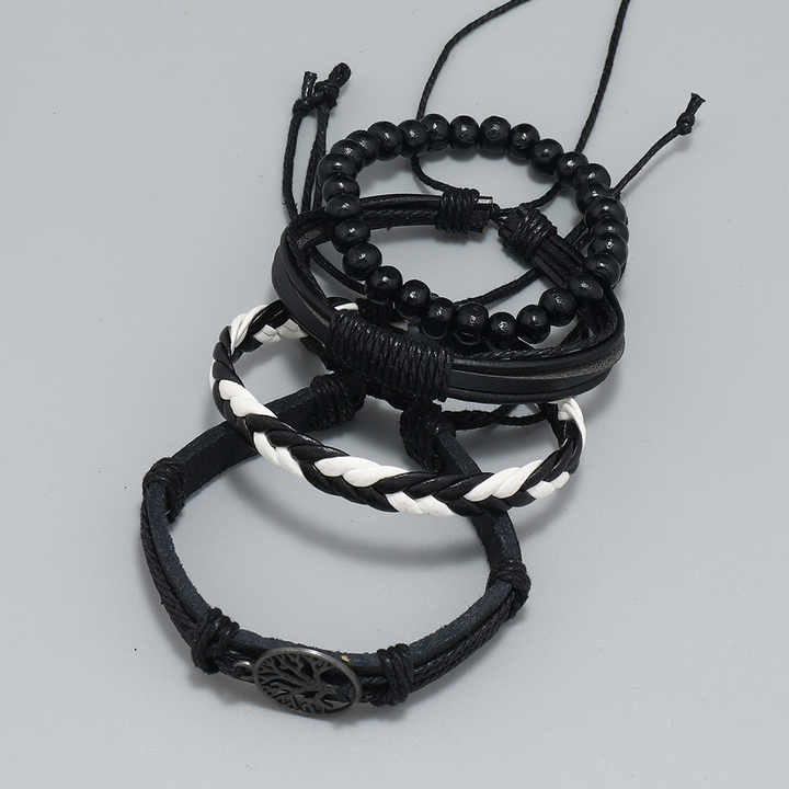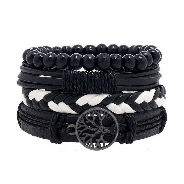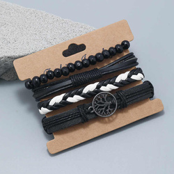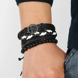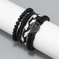- Ręcznie wykonana bransoleta ze skóry, sznurków i koralików