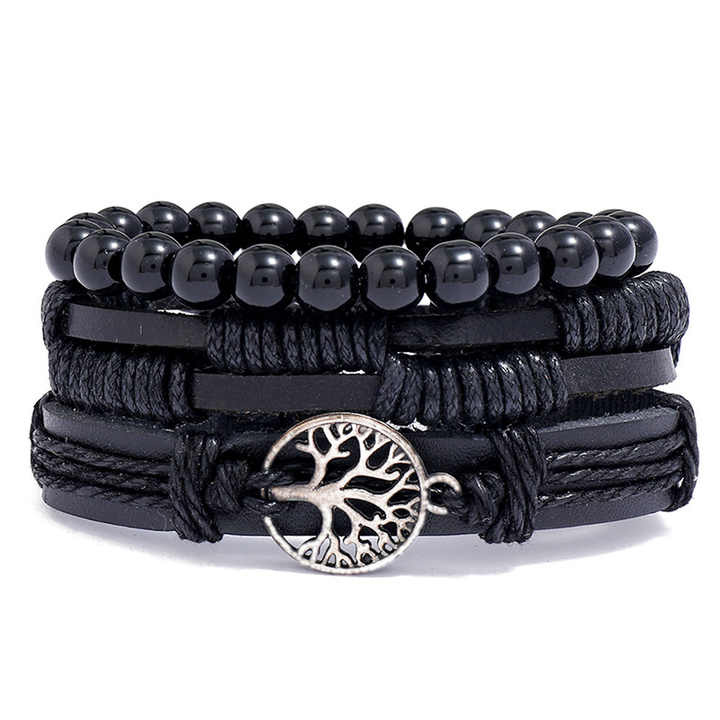 - Ręcznie wykonana bransoleta ze skóry, sznurków i koralików