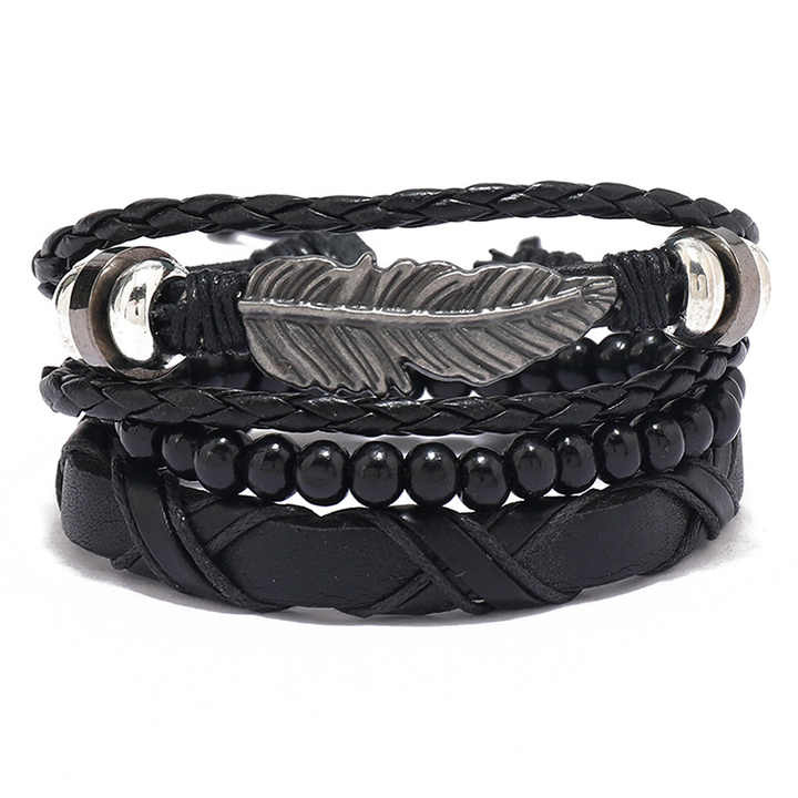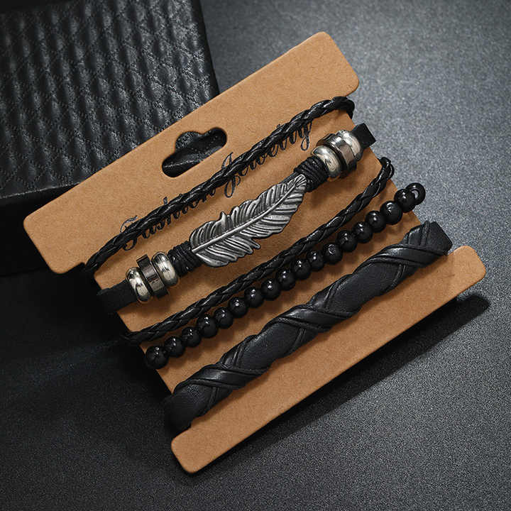 - Ręcznie wykonana bransoleta ze skóry, sznurków i koralików