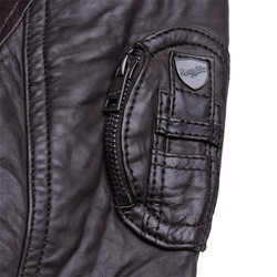 Męska skórzana kurtka lotnicza marki MAURITIUS to doskonała propozycja dla fanów lotnictwa, ale nie tylko. Naszywki z motywami skrzydeł i samolotów doskonale nawiązują do tego klimatu. Uszyta z miękkiej owczej skóry licowej, dzięki ściągaczom na dole i rękawach, kurtka zachowuje fason typowego bombera.