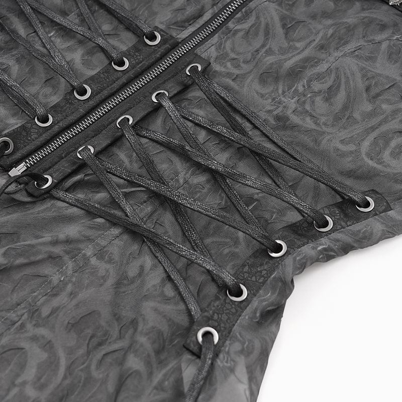 - Przezroczysta, ciemnoszara tkanina z ozdobnym wzorem.