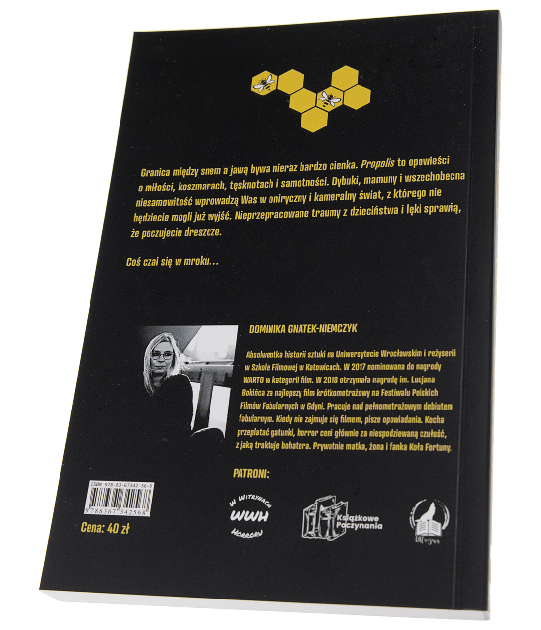 Granica pomiędzy snem a jawą bywa nieraz bardzo cienka. Propolis to opowieści o miłości, koszmarach, tęsknotach i samotności. Dybuki, mamuny i wszechobecna niesamowitość wprowadzą Was w oniryczny i kameralny świat, z którego nie będziecie mogli już wyjść. Nieprzepracowane traumy z dzieciństwa i lęki sprawią, że poczujecie dreszcze. Coś czai się w mroku.