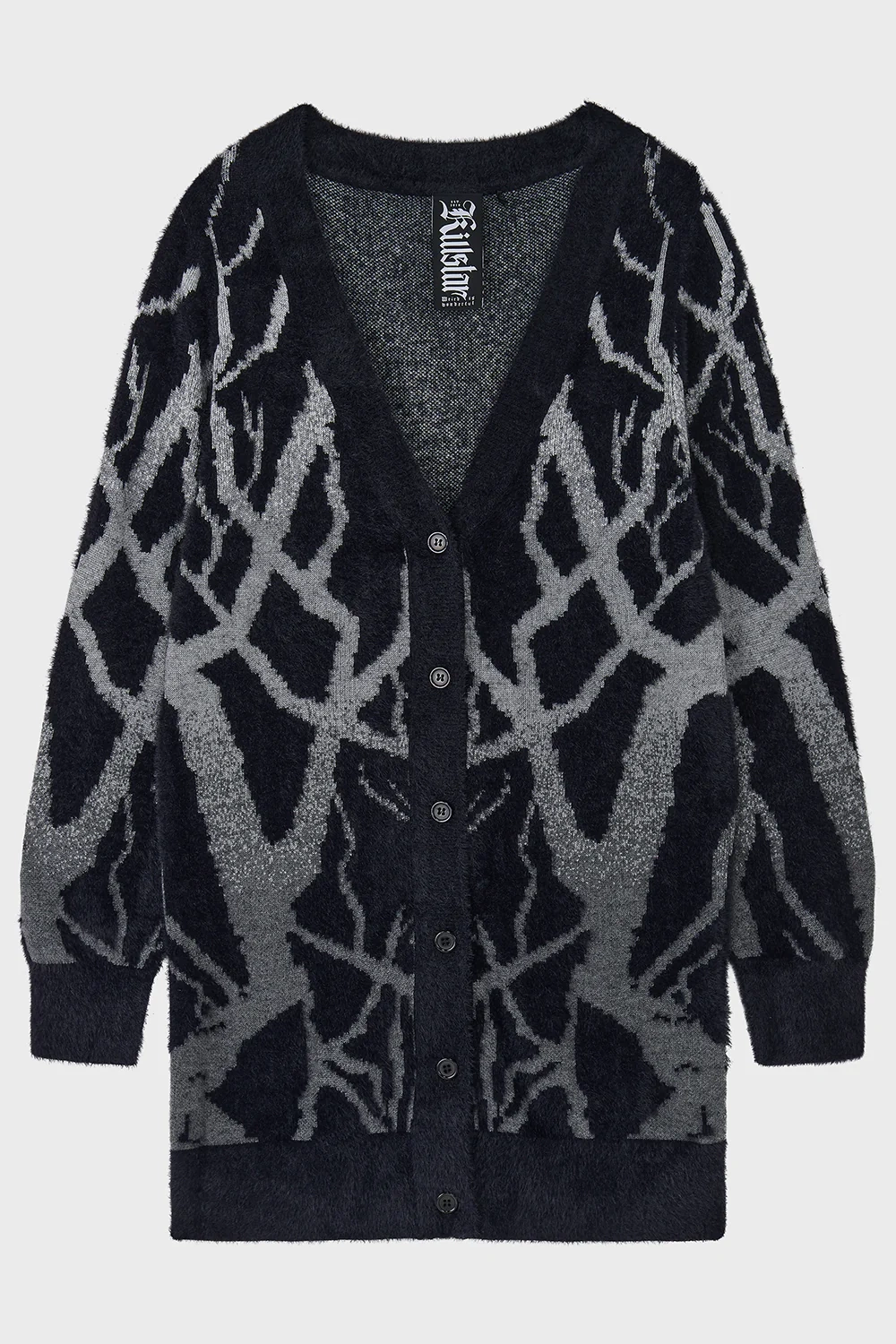 • Dzianinowy wzór ombre z leśnymi motywami.