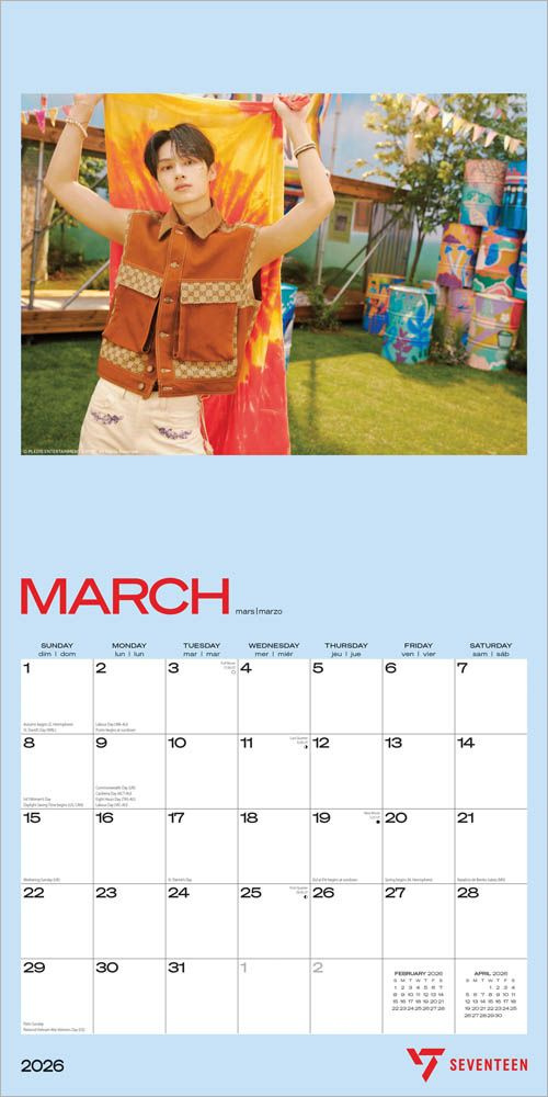 Wielkość kalendarza złożonego: szerokość 30,5 cm, wysokość 30,5 cm.