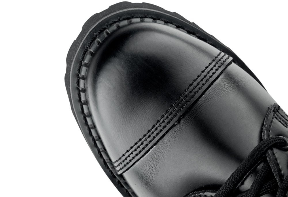 - Czubki butów wzmacniane stalowymi noskami. Liczba dziurek: 3 szt.