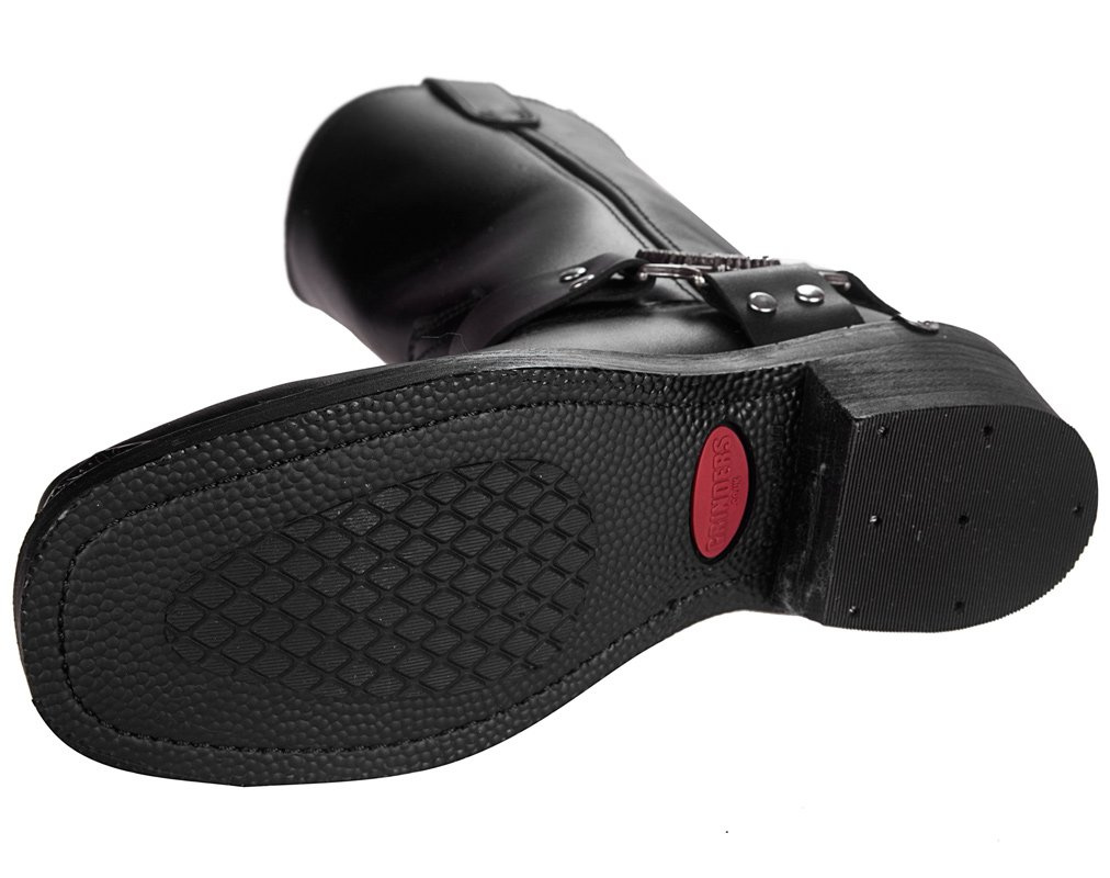 - Podeszwa gumowa. Obcas syntetyczny, podbity zapewniającą przyczepność gumą.