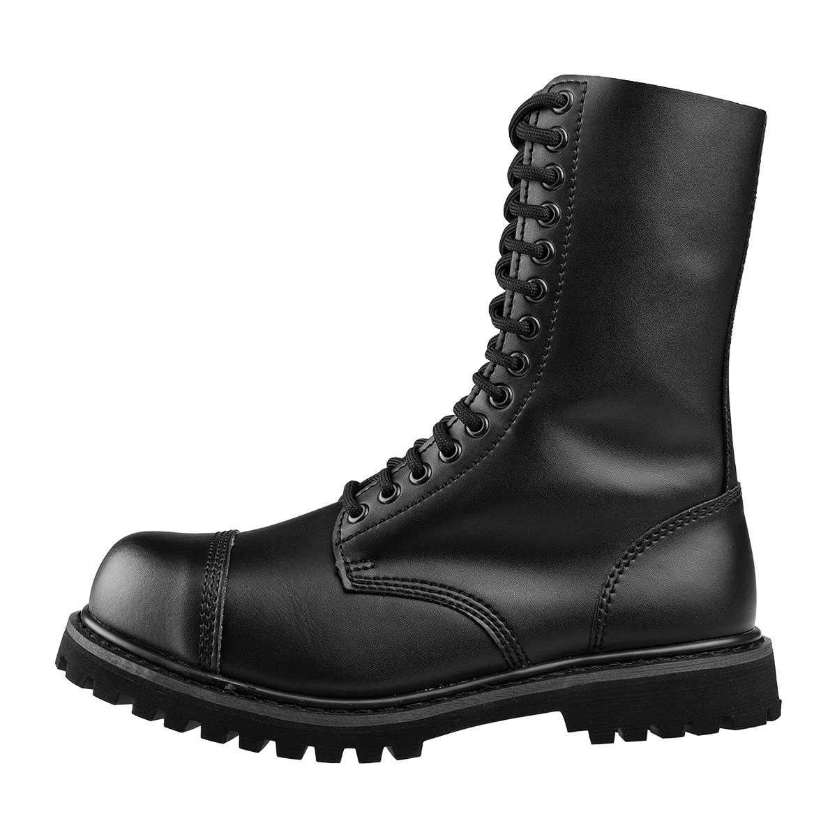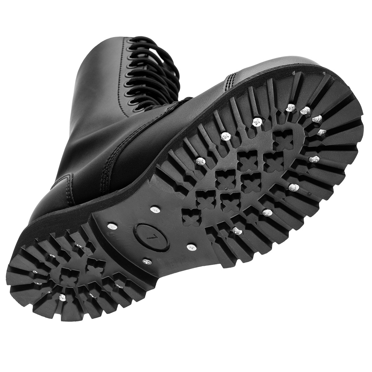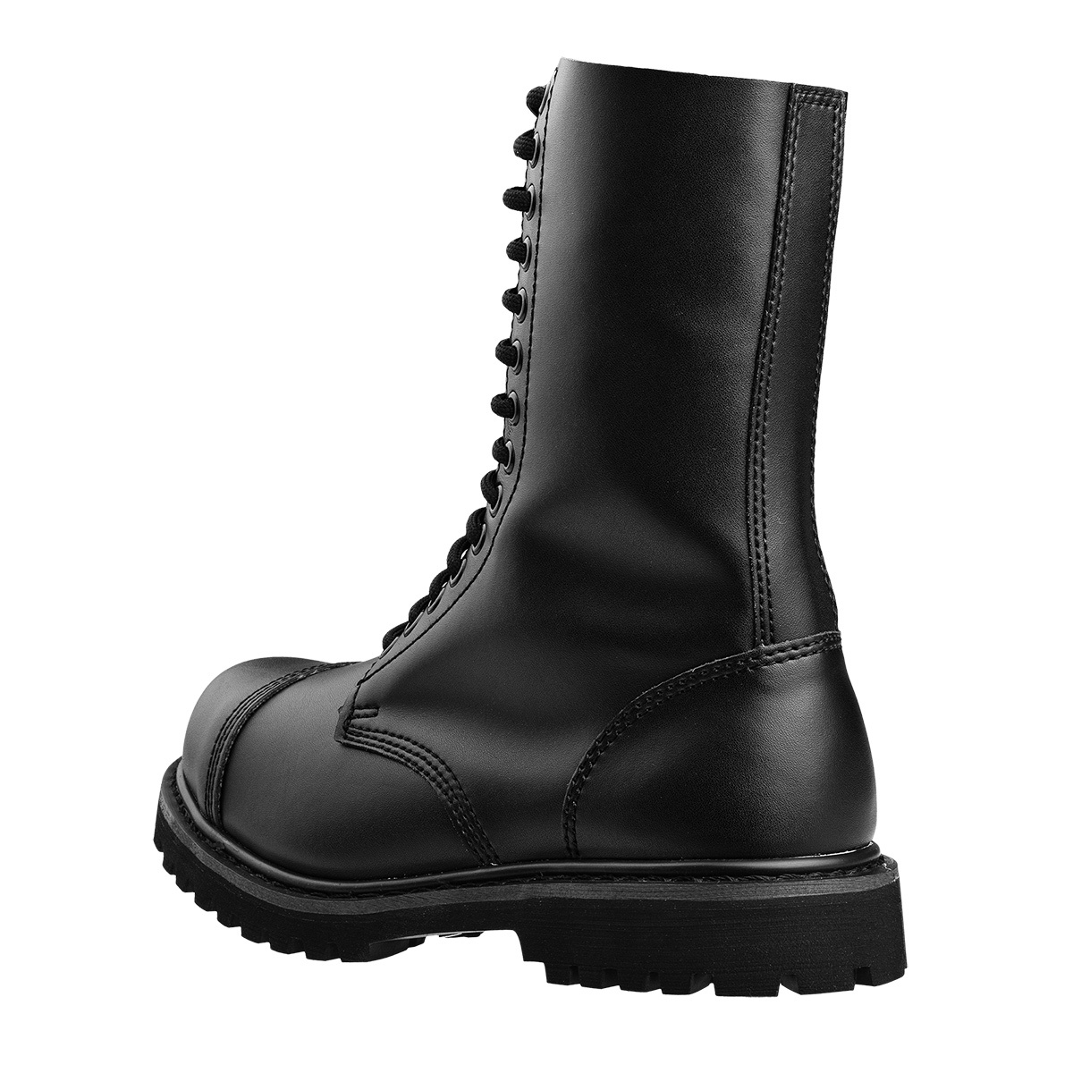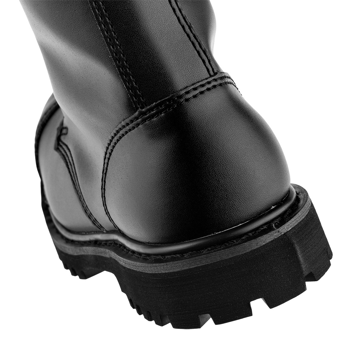 Buty VEGANTOM to doskonałe obuwie taktyczne, stworzone do wykorzystywania w najcięższych warunkach. Ze względu na jakość wykonania i użyte materiały przystosowane są do użytkowania w najcięższych warunkach. Buty zostały wykonane w całości z wysokogatunkowej skóry ekologicznej przez co charakteryzują się dużą odpornością na uszkodzenia i są łatwe w pielęgnacji. Podeszwa cerubowana jest klejona i wzmocniona szyciem. Posiada protektor i wykonana jest z antypoślizgowego i olejoodpornego, lanego tworzywa. System wzmocnień na czubie i pięcie powoduje, że buty są niezwykle odporne na uszkodzenia mechaniczne.