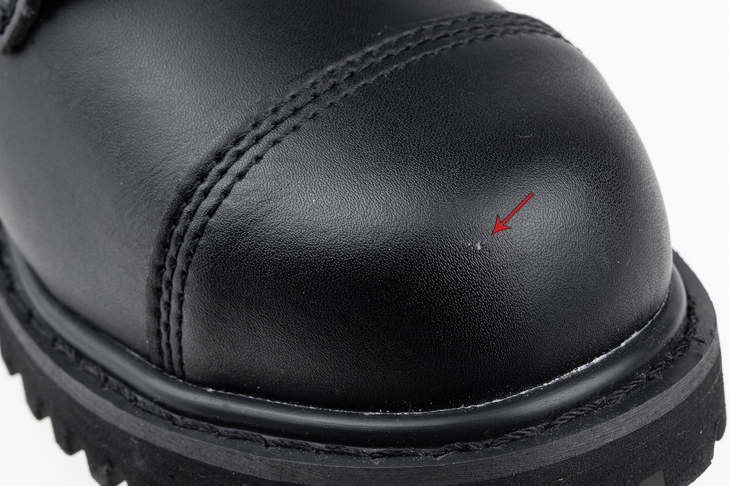 UWAGA! Produkt z widocznymi wadami, uszkodzeniami - nie podlega reklamacji. Wada: w lewym bucie brak okucia w otworze na sznurówkę, źle wszyty język oraz skaza na czubku (patrz zdjęcia).