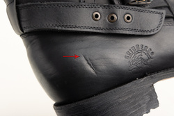 UWAGA! Produkt z widocznymi wadami, uszkodzeniami - nie podlega reklamacji. Wada: rozerwany wewnętrzny szew w prawym bucie, skazy i zarysowania skóry, ślady kleju (patrz zdjęcia).