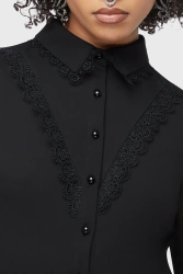 • Delikatne koronkowe wykończenie wokół kołnierzyka i dekolt w kształcie litery V.
