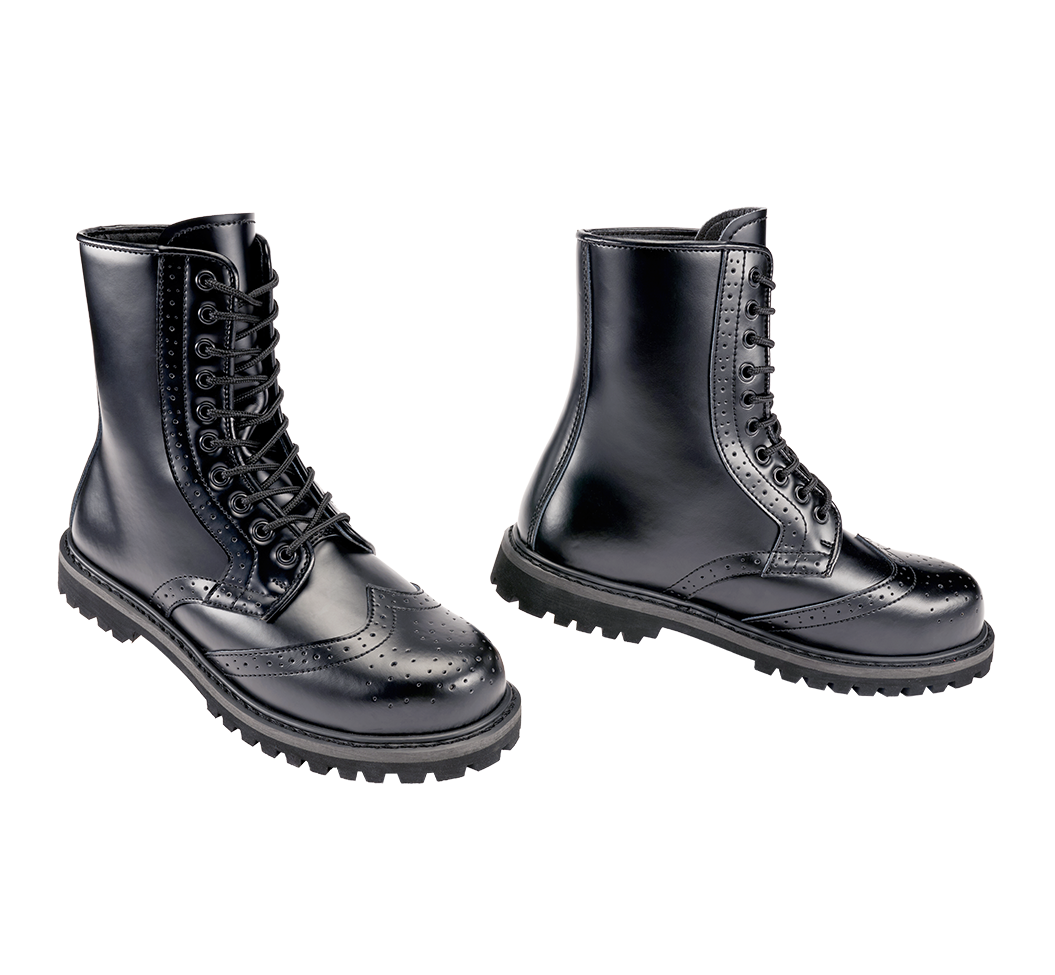 Buty PHANTOM to doskonałe obuwie taktyczne, stworzone do wykorzystywania w najcięższych warunkach. Ze względu na jakość wykonania i użyte materiały przystosowane są do użytkowania w najcięższych warunkach. Buty zostały wykonane w całości z wysokogatunkowej skóry naturalnej przez co charakteryzują się dużą odpornością na uszkodzenia i są łatwe w pielęgnacji. Podeszwa cerubowana jest klejona i wzmocniona szyciem. Posiada protektor i wykonana jest z antypoślizgowego i olejoodpornego, lanego tworzywa. System wzmocnień na czubie i pięcie powoduje, że buty są niezwykle odporne na uszkodzenia mechaniczne.