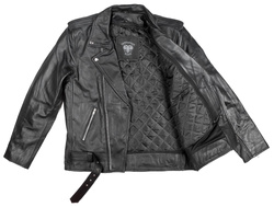- Kurtka ramoneska, uszyta z wysokiej jakości skóry bydlęcej o grubości 1,1 mm.