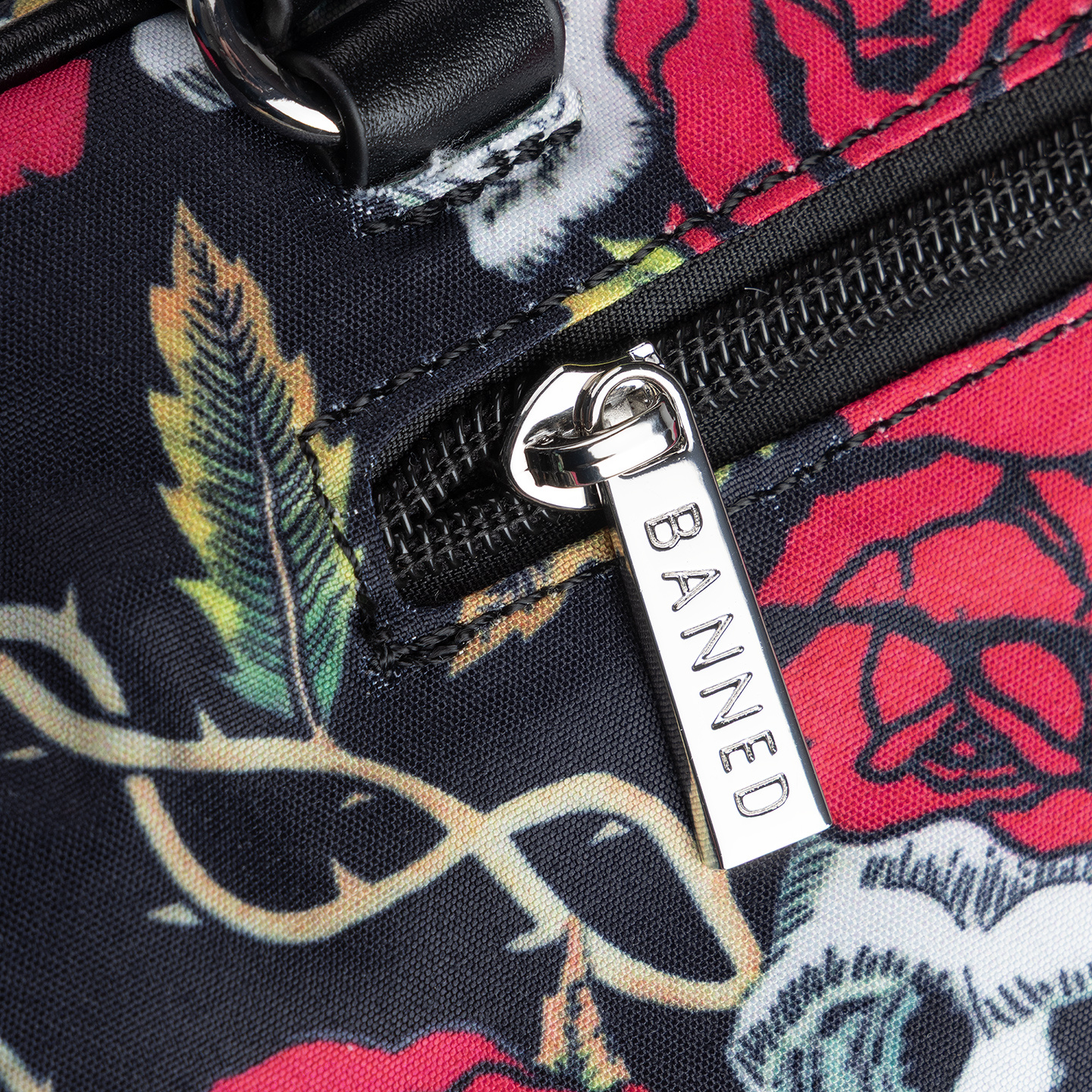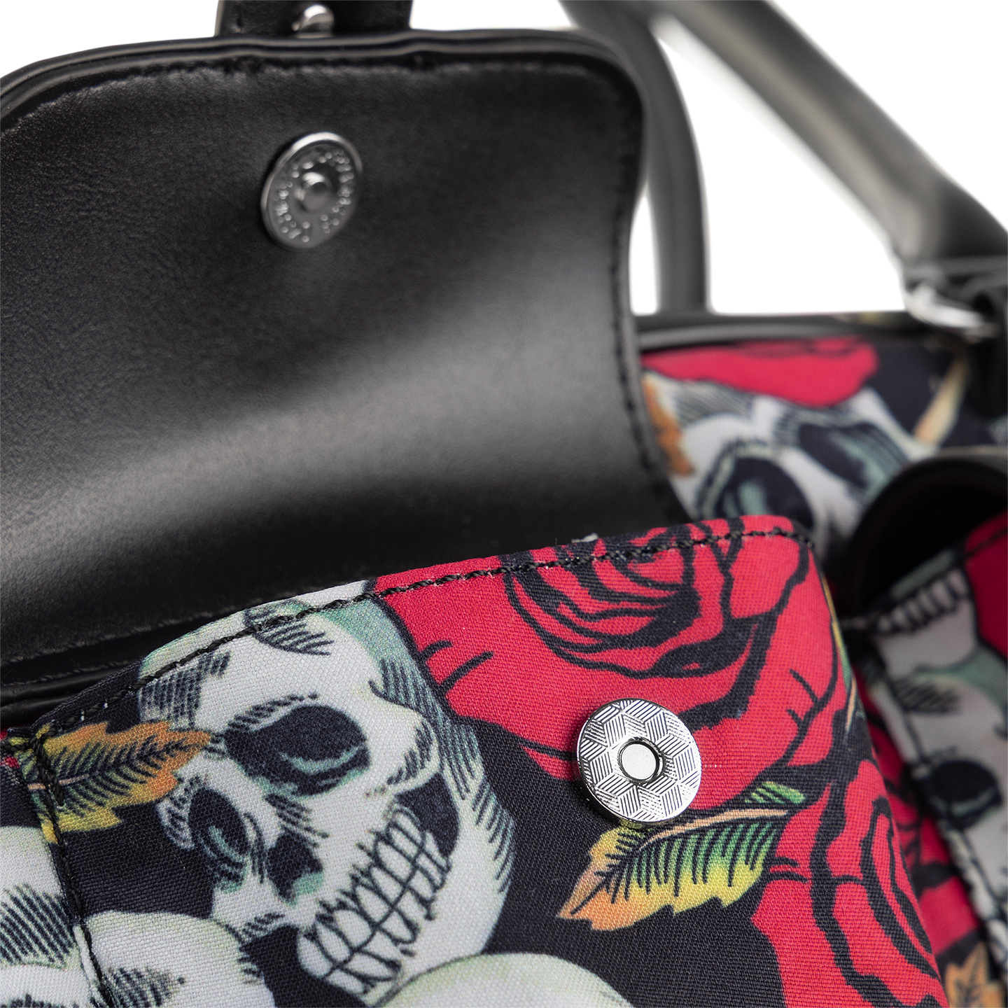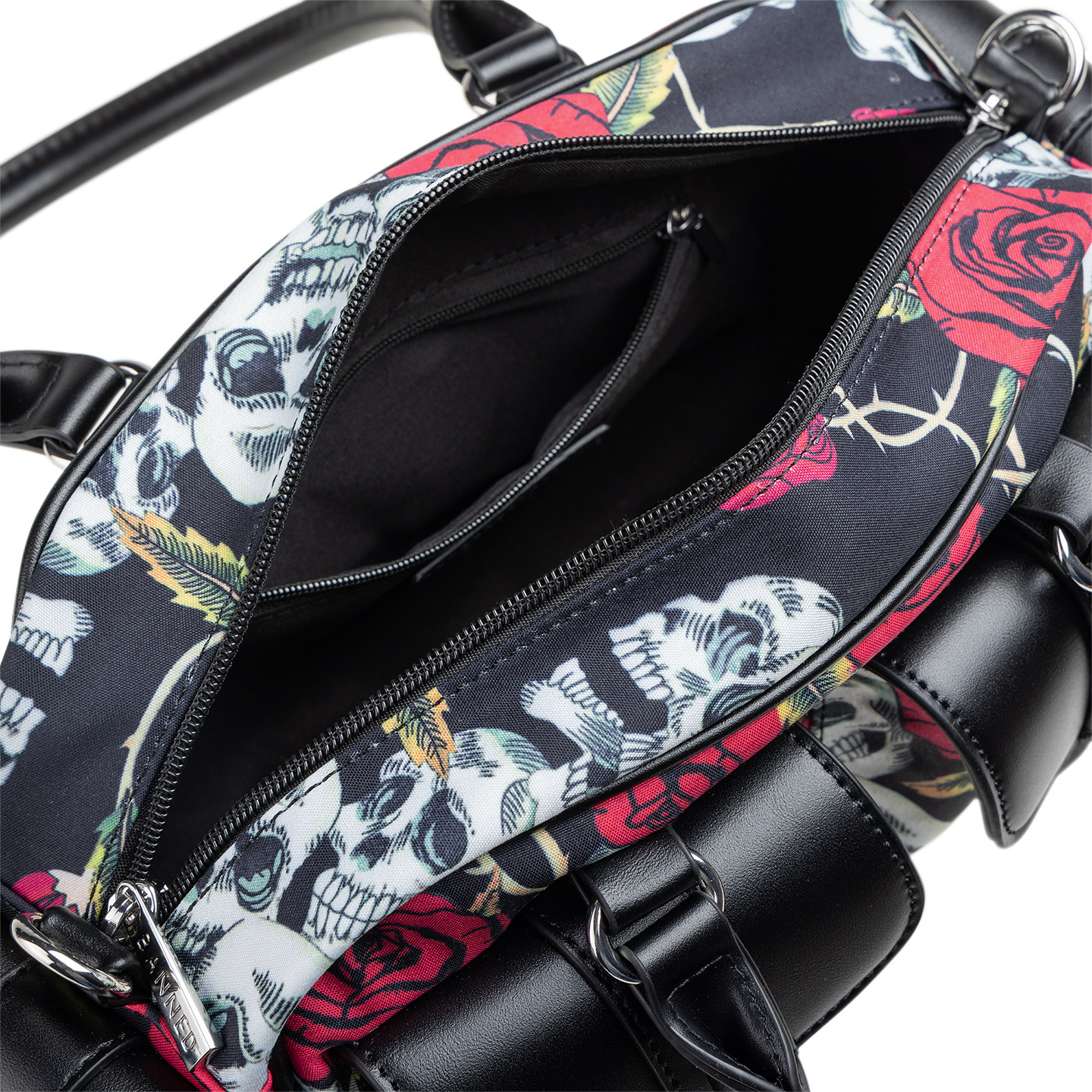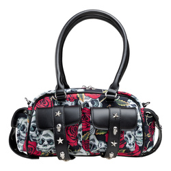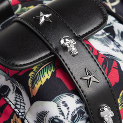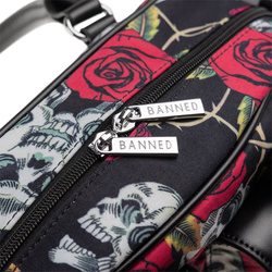 - Nadruk czaszki i róże na całej powierzchni.