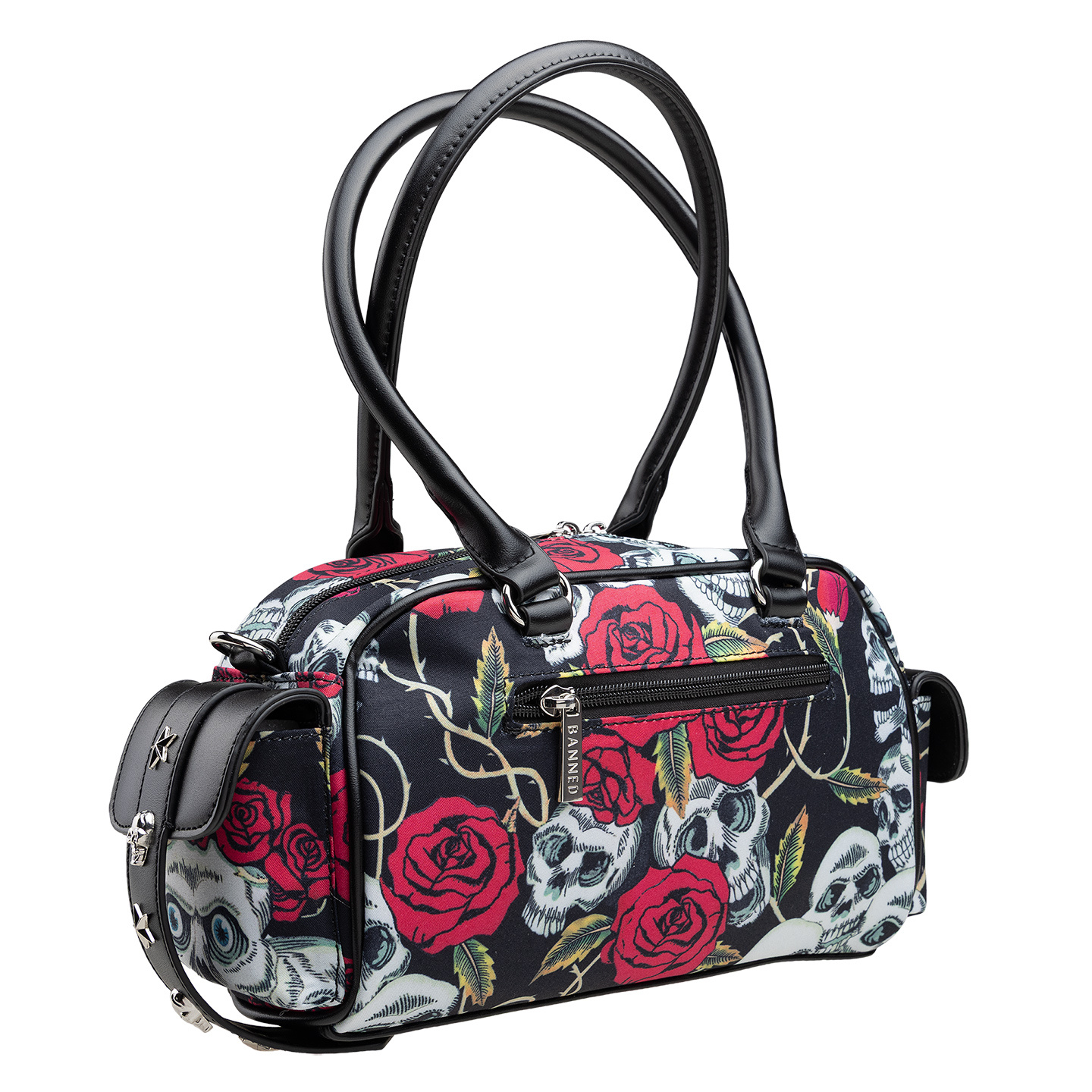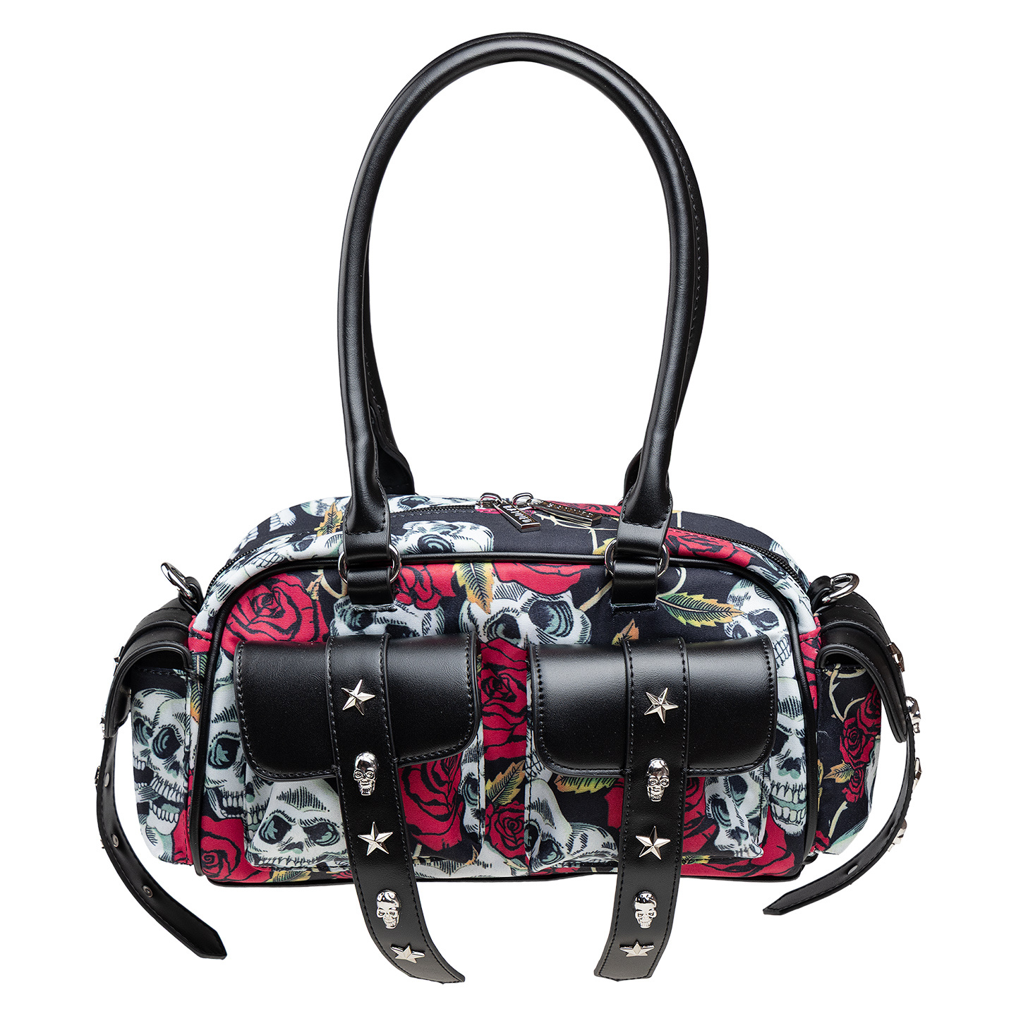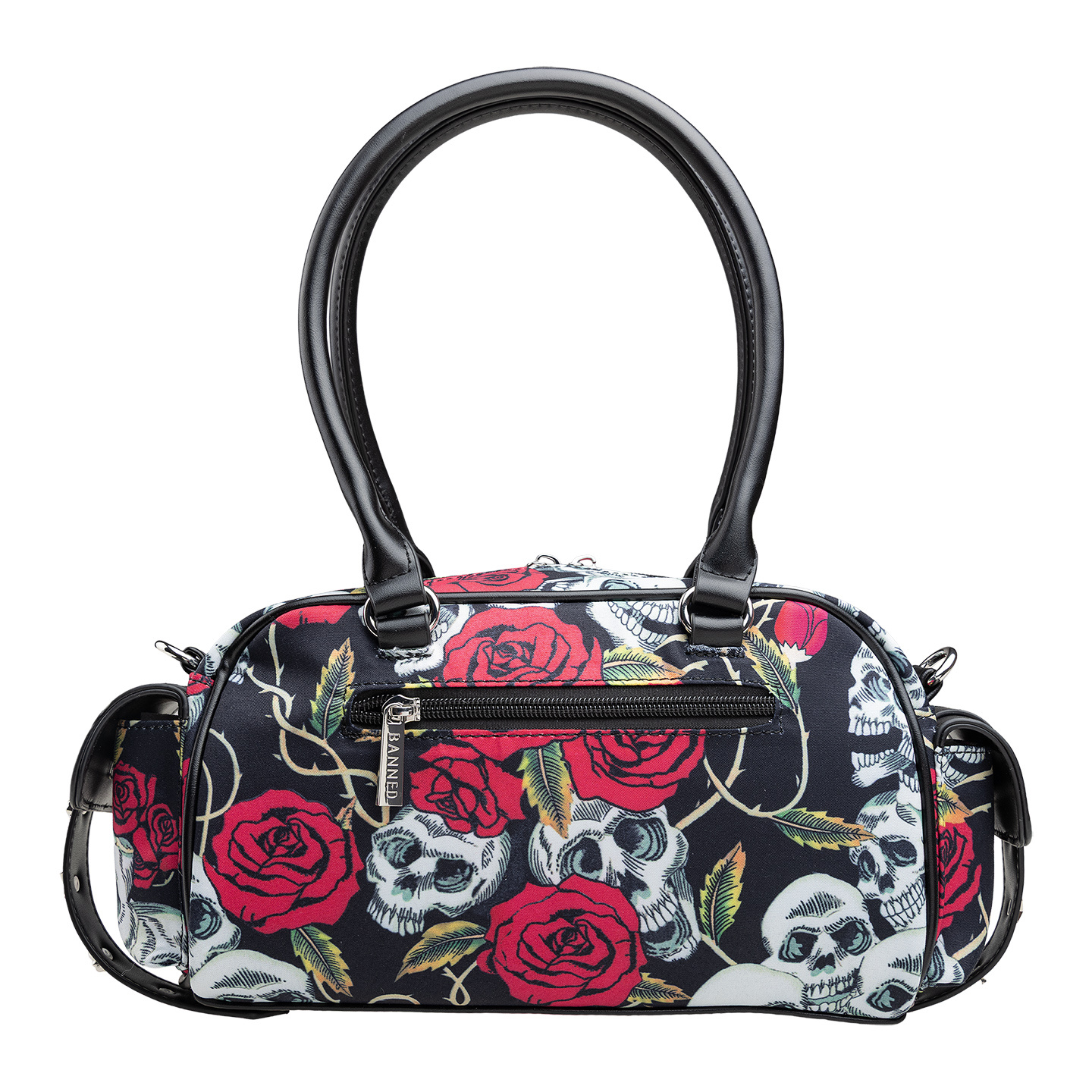 - Nadruk czaszki i róże na całej powierzchni.