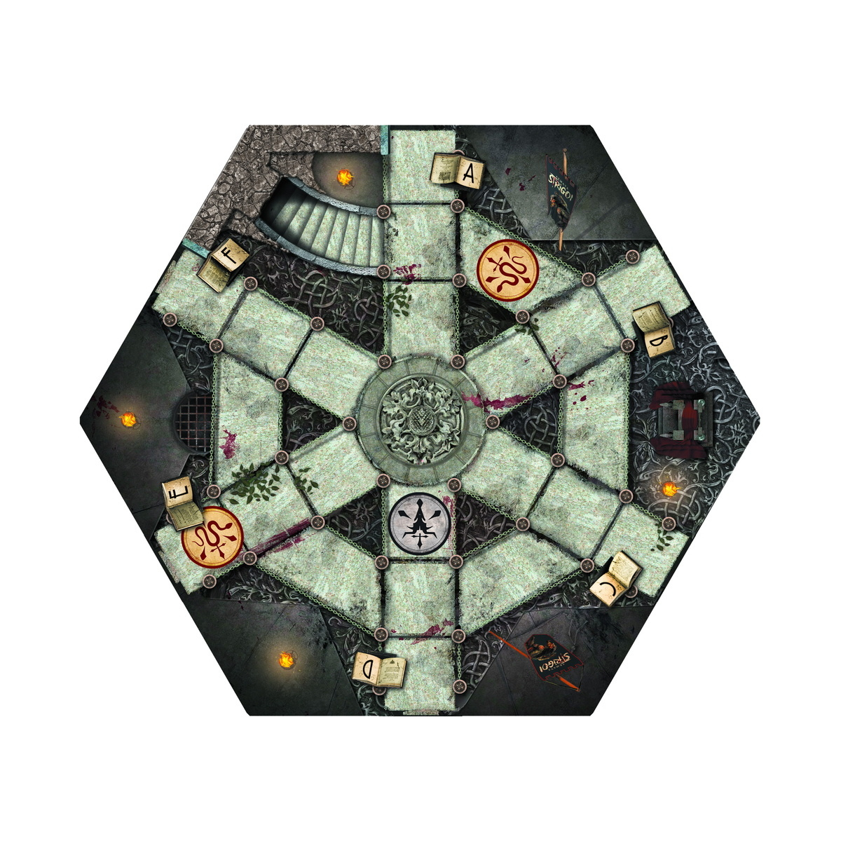 Koniec gry – Gracze wygrywają wspólnie, jeśli obie strzygi padną, zanim twierdza całkowicie się zawali.