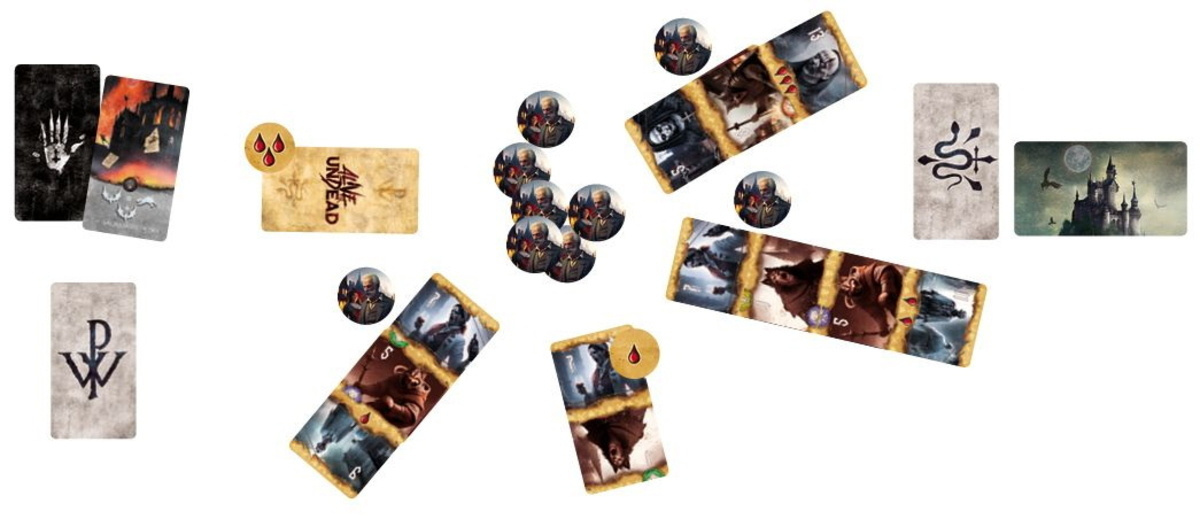 Przygotowanie gry – Podziel role wilkołaków pomiędzy graczy i przygotuj talię nieumarłych oraz akcji zgodnie z instrukcjami.