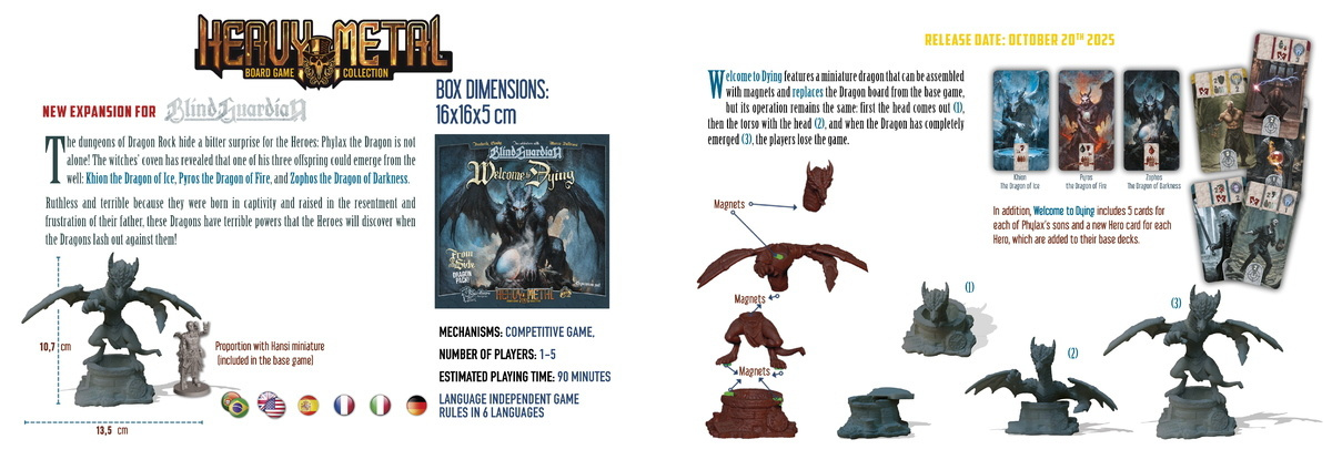Ten dodatek wprowadza modułowego smoka z magnetyczną miniaturą i nowymi kartami do gry, pozwalając graczom przeżyć kooperacyjną przygodę w mrocznym świecie Blind Guardian z jeszcze większą różnorodnością i opcjami strategicznymi. Idealny dla fanów zespołu i graczy z gry podstawowej, którzy chcą dodać trochę różnorodności i emocji do swojej gry.