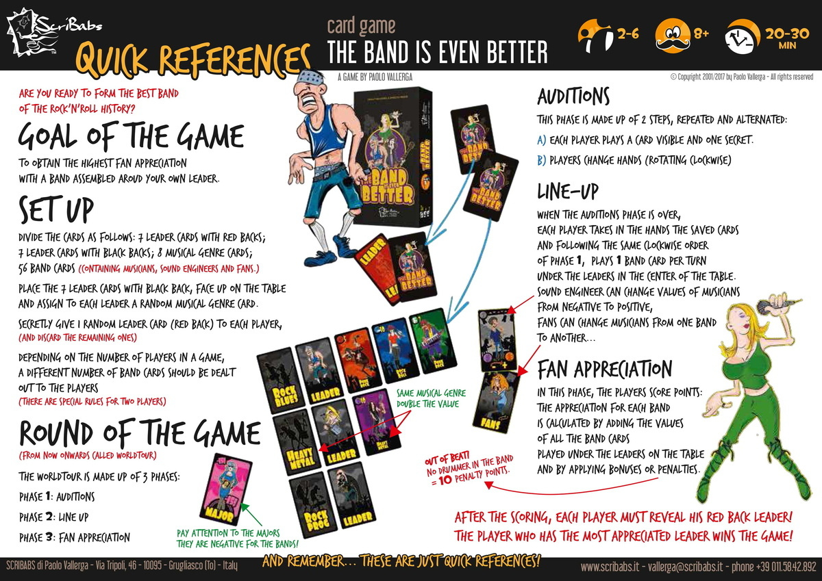 Wejdź do świata rock'n'rolla i stwórz najlepszy zespół wszech czasów w The Band is Even Better . Ta dynamiczna gra karciana przenosi Cię na scenę muzyczną, gdzie budujesz własny zespół i rywalizujesz o fanów. Gra łączy prostą mechanikę z humorystycznym motywem rockowym, oferując ekscytujące rozgrywki pełne strategicznego planowania i taktycznego podejmowania decyzji.