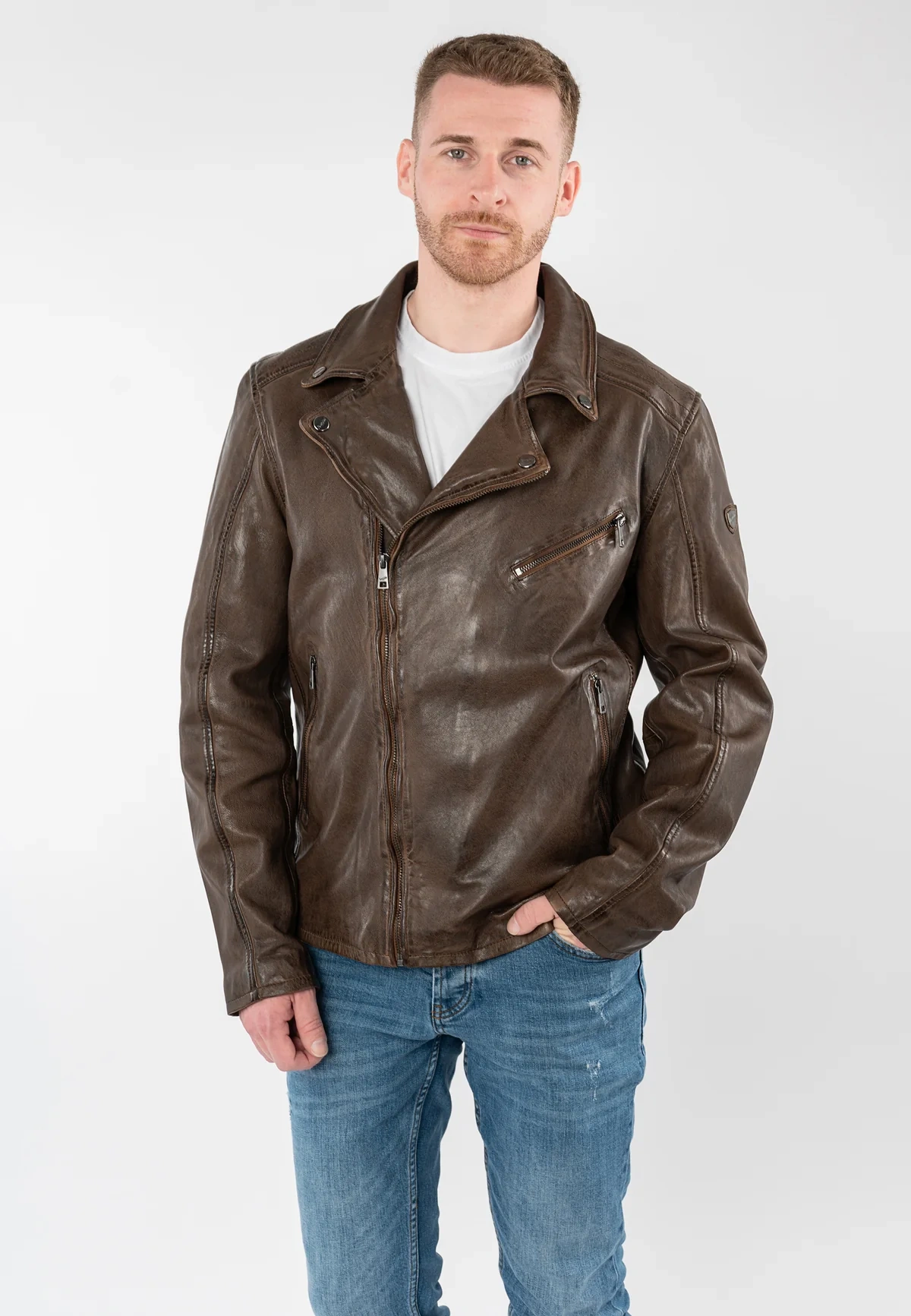 • Kurtka skórzana w stylu motocyklowym.