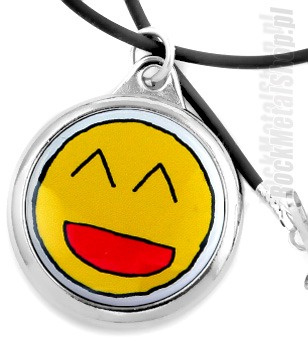 - Zawieszony na elastycznej, czarnej lince z tworzywa sztucznego o obwodzie około 45 cm.